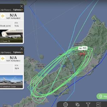 23日下午,有日本网友发布了美军嘉手纳基地的照片视频以及飞行轨迹数据,可以看到数架美军反潜巡逻机和电子侦察机不是正在飞往东海(图一),就是在琉球群岛上空盘旋(图二)。